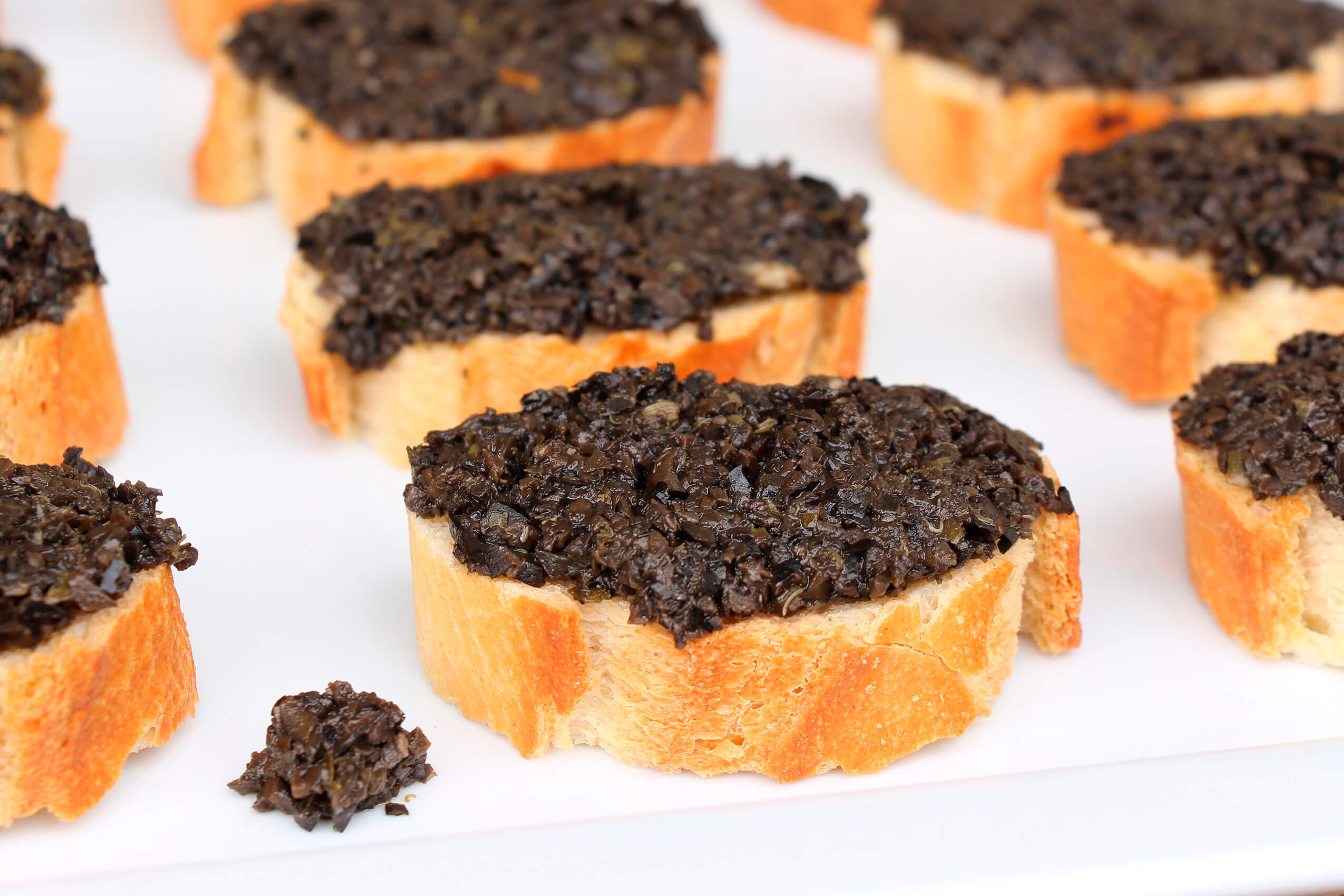 Olivenpaste frisch angerichtet aus schwarzen Oliven & Kapern